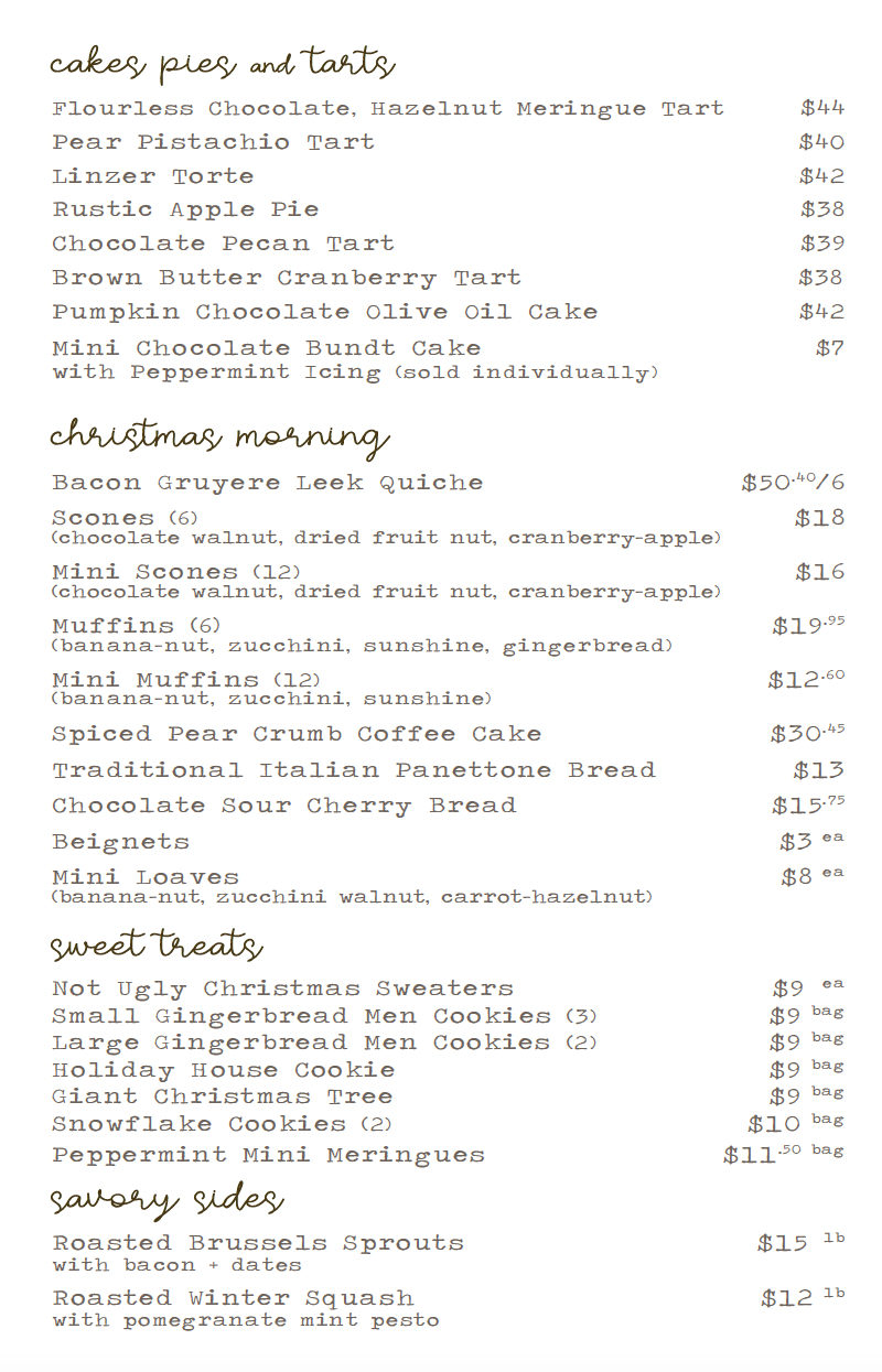 *NOTE: Please make sure your order is set for pick-up between this time in order to view our Holiday Menu. If it does not appear at first, please click the dropdown under ‘Choose a Menu’ and select ‘Christmas Pre-Orders’.